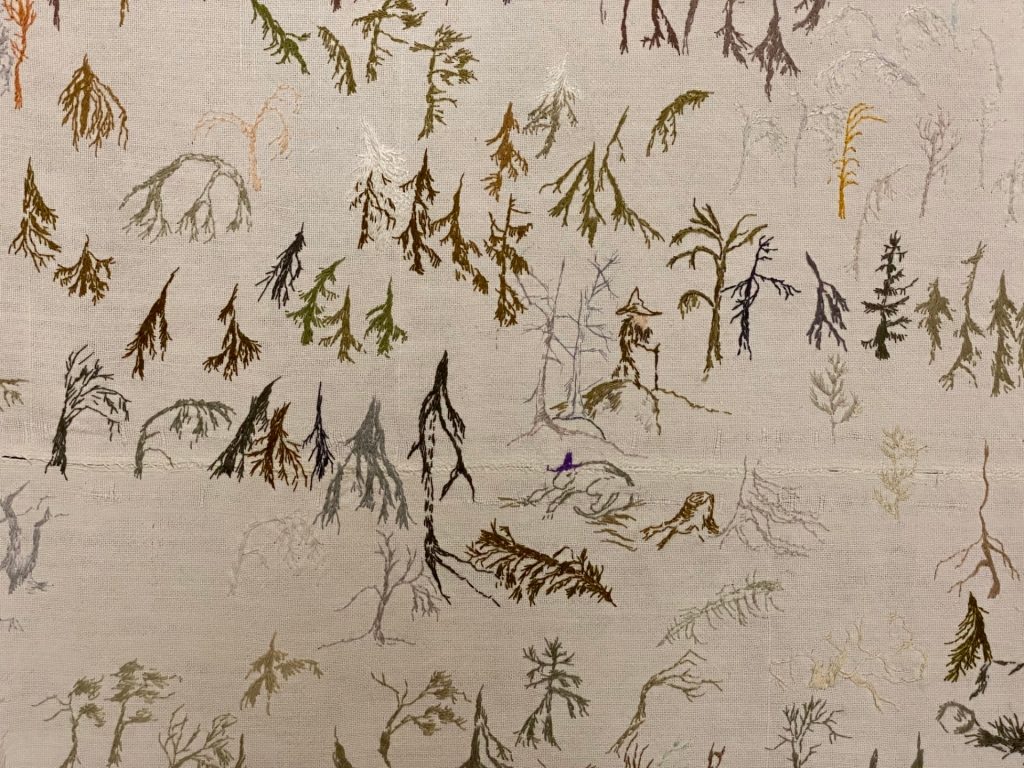El MUNA expone «En plass i skogen (Un lugar en el bosque)», el delicado bordado a mano de Kristine Fornes inspirado en los grabados rupestres de Canarias
