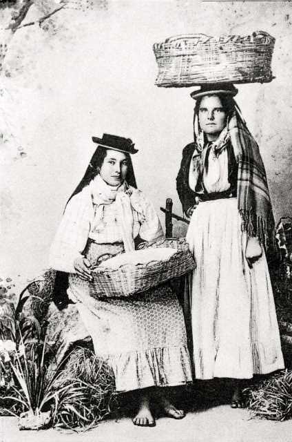 La gangochera fue un personaje femenino protagonista de la vida cotidiana de siglos pasados. Si echáramos un vistazo al paisaje insular de antaño la veríamos recorriendo los caminos, descalza muchas veces y siempre con el cesto en la cabeza. Ir sin calzado fue una constante en las áreas rurales isleñas hasta bien avanzado el siglo XX. Las grandes carencias económicas impedían a las clases populares cubrir las necesidades más perentorias y los zapatos constituían un artículo de lujo. Para no estropearlos los llevaban guardados, poniéndoselos únicamente cuando llegaban a su destino.