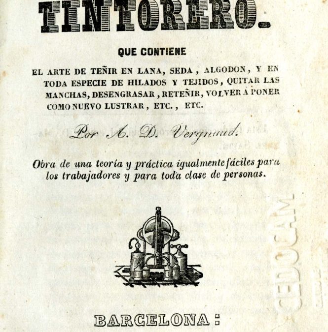 Manual del tintorero, que contiene el arte de teñir la lana, seda, algodón, y en toda especie de hilados y tejidos, quitar las manchas, desengrasar, reteñir, volver a poner como nuevo, lustrar, etc. una obra de teoría y práctica igualmente fáciles para los trabajadores y para toda clase de personas escrito por A. D. Vergnaud e impreso en Barcelona por la Imprenta de D. Manuel Sauri en 1842.