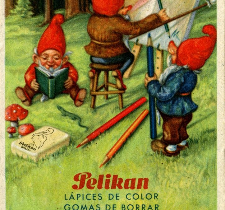 En este caso se trata de un papel secante de la marca Pelikan ilustrado con un motivo infantil, temática que gozó de gran popularidad para captar la atención de los escolares