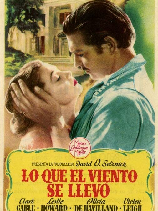 Programa de mano de una de las películas más famosas de la historia del cine: Lo que el viento se llevó. Esta película, basada en la novela del mismo título de Margaret Mitchell, fue estrenada en 1939 y recibió 8 Oscars más uno honorario (de los 13 a los que competía). Fue dirigida por Víctor Fleming, George Cukor y Sam Wood e interpretada por Vivien Leigh, Clark Gable, Olivia de Havilland, Leslie Howard, Hattie McDaniel, Thomas Mitchell, Barbara O’Neil, Butterfly McQueen, Ona Munson, Ann Rutherford, Evelyn Keyes y Mickey Kuhn.