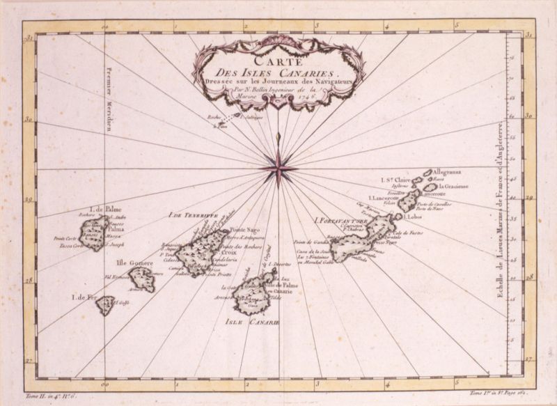 Carte Des Isles Canaries. Dressée sur les Journeaux des navigateurs par N. Bellin, Ingenieur de la Marine. 1746. Hierro. Premier Meridien