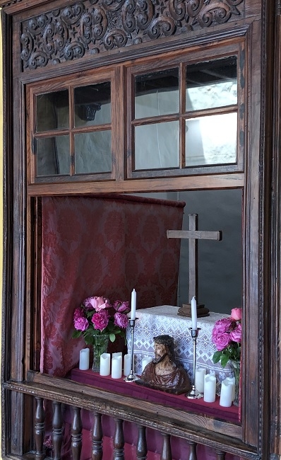 El Museo de Historia y Antropología, que a través de los años ha instalado algunas variantes de cruces enramadas de Tenerife, nos muestra este año esa modalidad de cruz doméstica instalada en una ventana que se abre al público de la calle tan solo en esta ocasión.