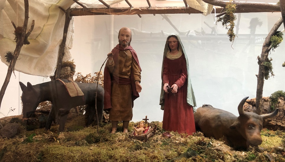 Este Nacimiento expone parte de las figuras del Nacimiento de la Casa de Nava, datado en el siglo XIX, y cuya peculiaridad estriba en su evidente factura popular, ya que las piezas no proceden de un taller, sino que han sido creadas en el ámbito doméstico, lo que a su vez realza y potencia su componente etnográfico.