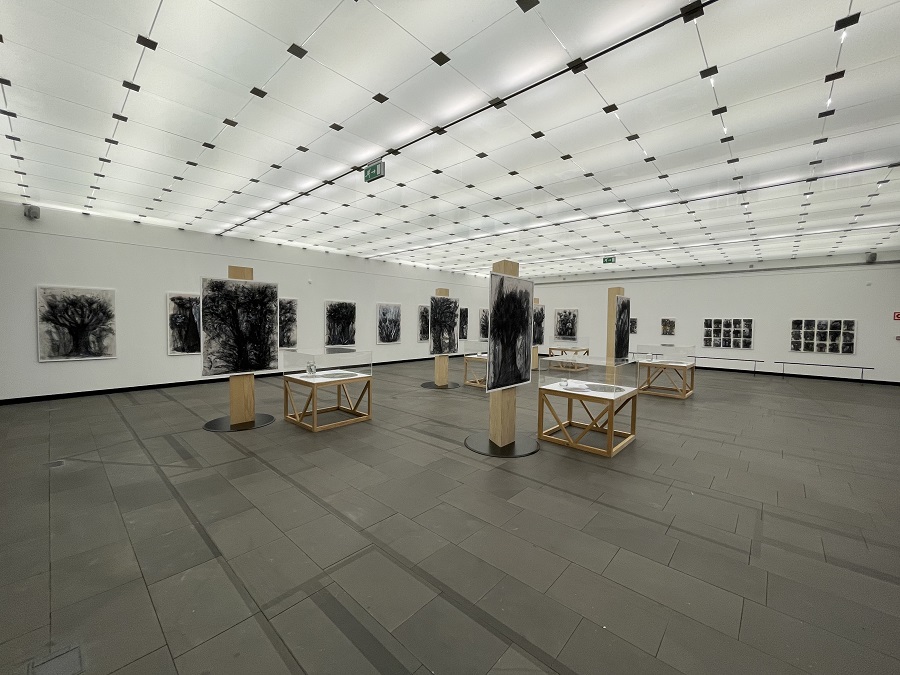 En su Diccionario de símbolos, el escritor y mitólogo Juan Eduardo Cirlot afirma que el árbol es “uno de los símbolos esenciales de la tradición”, y subraya su naturaleza: “eje del mundo y expresión de la vida inagotable en crecimiento y propagación”. Lola del Castillo, en esta nueva serie, parece reconducirnos a este paraje esencialmente natural, primigenio. En ella reconocemos imágenes de prototipos vegetales de otro tiempo, formas fósiles que se levantan desde el fondo de la imagen, como el rostro fantasmagórico de especies de tiempos pretéritos halla-das sobre una superficie mineral. Sus árboles nos hablan de otros árboles envueltos en la magia de la tradición y la leyenda. Y es que, estas formas arborescentes dibujadas sobre el papel, ¿no parecen invocar la imagen de aquel árbol de agua, mítico, venerado por los isleños en tiempos remotos y bajo cuyas ramas los enfermos ansiaban sanar por el efecto benigno de la bruma que envolvía la envergadura de su tronco? Ante la contemplación de estos dibujos, ¿no se interpone ante nuestros ojos la sombra, majestuosa, del drago cuya savia curaba las heridas de los enfermos; aquel Gigante de Arautava −el drago más admirado de todos los tiempos, referido por los viajeros a las Islas Canarias y dibujado por J. J. Williams en su cuaderno de viaje–, algo tan antiguo e impreciso que solo podría revelarse a través de las formas acuosas e imprecisas de la tinta o del carboncillo sobre el papel? Y, sin embargo, la tradición parece truncada, porque no hay nada verde en estos dibujos que haga reconocible el lugar. El jardín primigenio es únicamente una sombra carbonizada, un indicio que tiende al ocultamiento, un no-lugar.