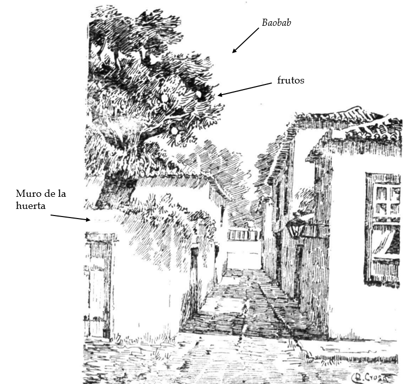 Epílogo – En la ciudad de Santa Cruz de Tenerife (Canarias), en la angosta callejuela (llamada antiguamente Callejón del Judío) situada, por entonces, entre las céntricas calles del Pilar y del Norte, cerca de la Plaza del Príncipe, una vía que por la noche estaba alumbrada sólo por la macilenta luz de un vetusto farol (ver Rodríguez, 2001), existía un hermoso y altivo árbol (Adansonia digitata, conocido popularmente como baobab) propiedad de la familia Mendizábal (que luego fue de los Pallés). Enigmático, relatan que alguien lo había traído -hacía años, no se sabía cuántos- desde el vecino continente africano, donde era venerado por sus cualidades y, orgulloso, proyectaba en ocasiones desde sus gruesas ramas, voluminosos y alargados frutos o exhibía delicadas flores. Con el tiempo y el desarrollo urbanístico que llevó a la ampliación del mencionado callejón, a finales del siglo XIX, en concreto en la década de los ochenta, fueron muchas las voces discrepantes que clamaron angustiadas para evitar que se talara tan hermoso ejemplar. De hecho, eruditos botánicos como Ramón Masferrer o Eduardo Rodríguez Núñez, este último del que el Museo de Ciencias Naturales de Tenerife (MUNA) –curiosamente- posee un valioso herbario de época que está siendo objeto de una intensa labor de actualización/recuperación de pronta publicación; entre otros autorizados pensadores, escribieron varios artículos en prensa local sobre el baobab tinerfeño, para evitar desesperadamente su desaparición, proponiendo incluso, como fue el caso de Rodríguez Núñez, que se ubicara en otro lugar, enverjado, para evitar las típicas amenazas de la muchedumbre. La lectura de los artículos de estos eruditos, nos suministran datos interesantes que nos permiten evaluar, hoy en día, cómo era el árbol, símbolo de una calle tan deliciosa y popular.