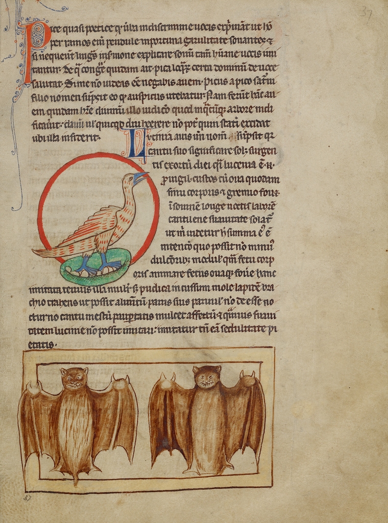 FOTO 3.- Murciélagos presentes en manuscritos iluminados del Medievo. Detalle del Bestiario Northumberland (Getty Collection)