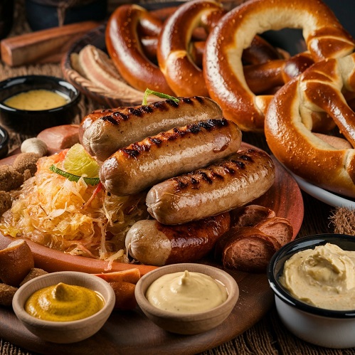 El primero de estos puestos llamado ‘La Salchichería’, ofrece las populares Bratwurst Currywurst, unas salchichas asadas acompañadas con mostaza o salsa de curry, con papas fritas. También, el puesto ‘La Era’ cuenta con platos típicos como el de