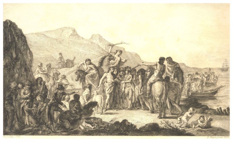 [Grabado «Reunión amistosa de los patagones con los tripulantes de la Descubierta»]