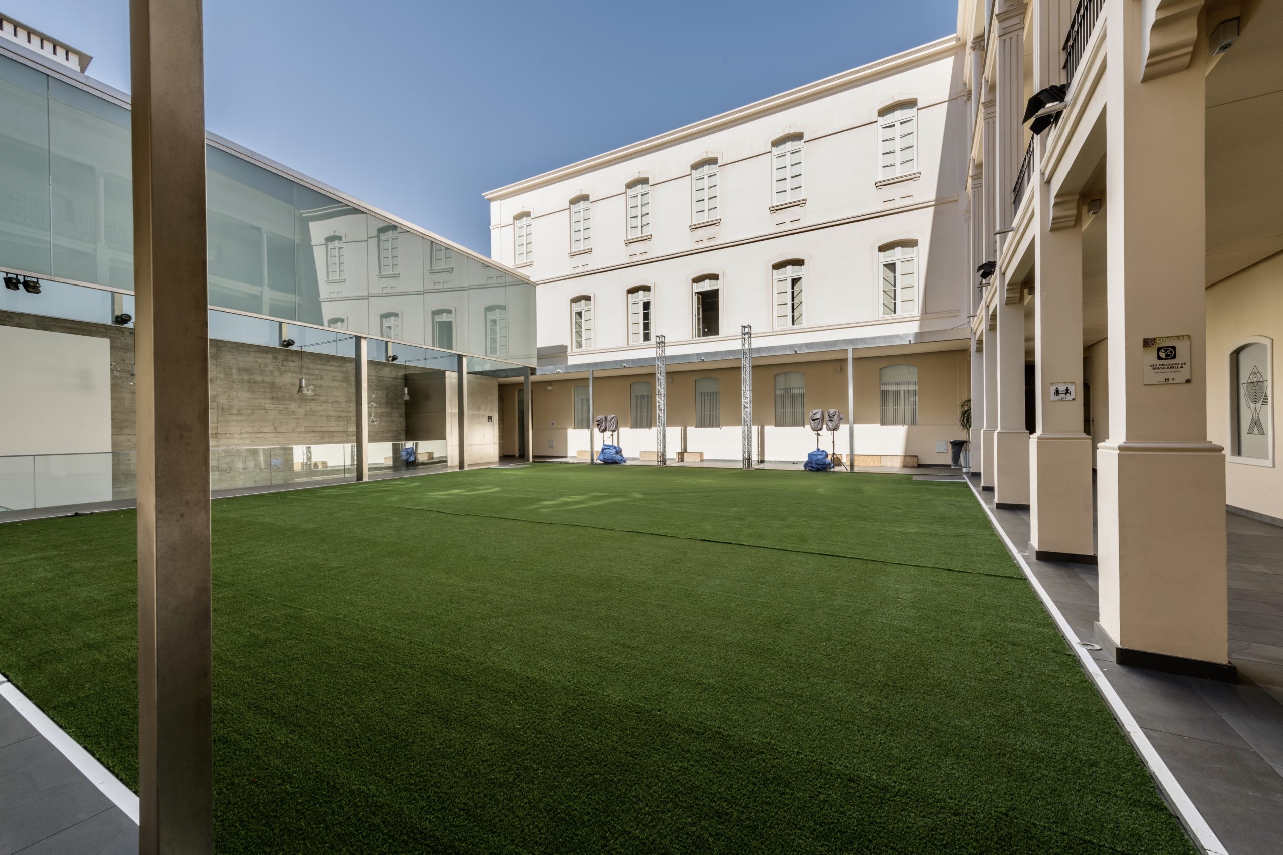 Amplio espacio diáfano, con suelo de césped artificial, el cual cuenta con posibilidad de proyección exterior e interior, además de sistema de iluminación «Martin Alien».