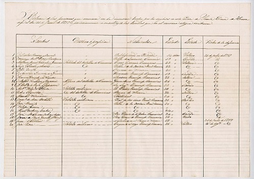 Documento sobre la relación de los fallecidos en la Gesta del 25 de julio de 1797