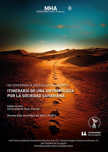 El Museo de Historia y Antropología, en colaboración con la Asociación Canaria de Antropología y el Área de Antropología Social y Cultural de la Universidad de La Laguna, iniciaron en 2016 la organización de las Conferencias Malinowski, en referencia a Bronislaw Malinowski, uno de los más destacados representantes de la antropología social británica. Revolucionó las técnicas de investigación de los trabajos de campo en la etnografía, y sus investigaciones en Melanesia fueron modelo para muchas generaciones de antropólogos/as. A su regreso de Melanesia, residió en Icod de los Vinos –en la Finca Boquín-, una estancia especialmente relevante en su biografía, periodo en el que escribió su principal obra, Los argonautas del Pacífico occidental, que sintetiza buena parte de los logros de la antropología clásica. Las Conferencias Malinowski fueron concebidas para la impartición de ponencias magistrales por destacadas/os especialistas en el campo de las ciencias sociales, en torno a las múltiples dimensiones socioculturales de las sociedades contemporáneas. Así, la VIII Conferencia Malinowski, programada para el 8 de noviembre de 2024, versará sobre el Itinerario de una antropóloga por la sociedad sahariana. Para la conferenciante, la palabra «itinerario» le permite incluir la parte de reflexión y escritura más allá del propio viaje a los lugares de estudio, y por tanto evocar tanto a los nómadas moros como sociedad y cultura, como a la antropología como disciplina. Al hacerlo remite a los oyentes a la lectura de sus tres libros que han sido traducidos al español. En primer lugar, Los hijos de las nubes, en tanto que viaje entre los nómadas y, al mismo tiempo, la cuestión de la experiencia del trabajo de campo de la antropóloga. En segundo lugar, Lo que no dice la antropología, en cuanto a la parte reflexiva sobre la construcción del discurso antropológico. Y, por último, la trilogía de la que La hija del cazador es el primer volumen, como contribución de la antropología a la historia colonial de esos territorios, al reflejar las memorias de pueblos representativos de las tres culturas reunidas en las Unidades Méharistas, que conquistaron y luego administraron el Rgaybat: los moros (goumiers y familias de goumiers), los blancos (oficiales méharistas), los negros (fusileros senegaleses)PONENTE