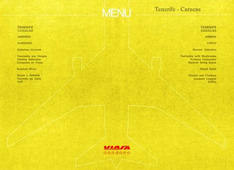 Menú del vuelo Tenerife-Caracas de Viasa, una de las compañías aéreas más importantes y prestigiosas de América en la década de los 70 y 80.