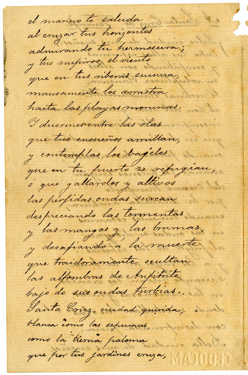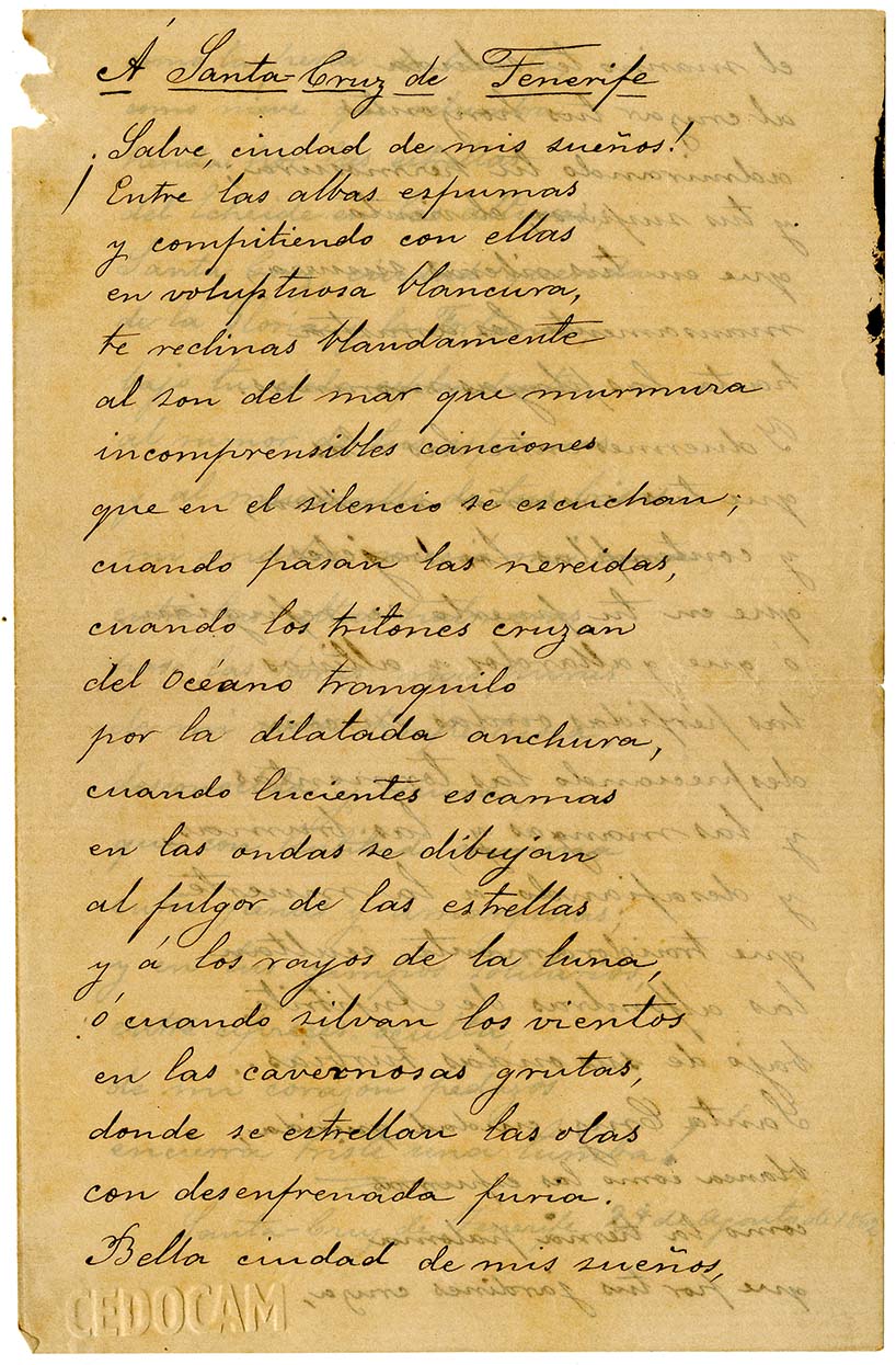 En estos momentos tan desafortunados y preocupantes para el pueblo de Tenerife, desde el Centro de Documentación de Canarias y América (CEDOCAM) queremos dar aliento al alma de los tinerfeños frente a esta dura pandemia a través de un maravilloso poema de Nicolás Estévanez dedicado a Santa Cruz de Tenerife y escrito el 29 de agosto de 1862.
