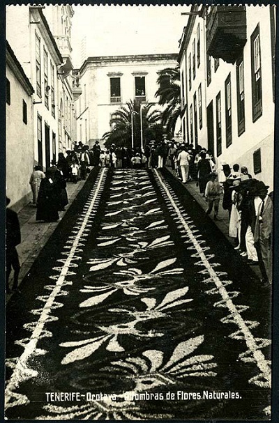 El Centro de Documentación de Canarias y América (CEDOCAM) dedica esta semana la sección «Tidbits» a esa las tradicionales fiestas del Corpus Christi de la Villa de La Orotava. Presentamos una tarjeta postal que pertenece a la colección digital del Centro.