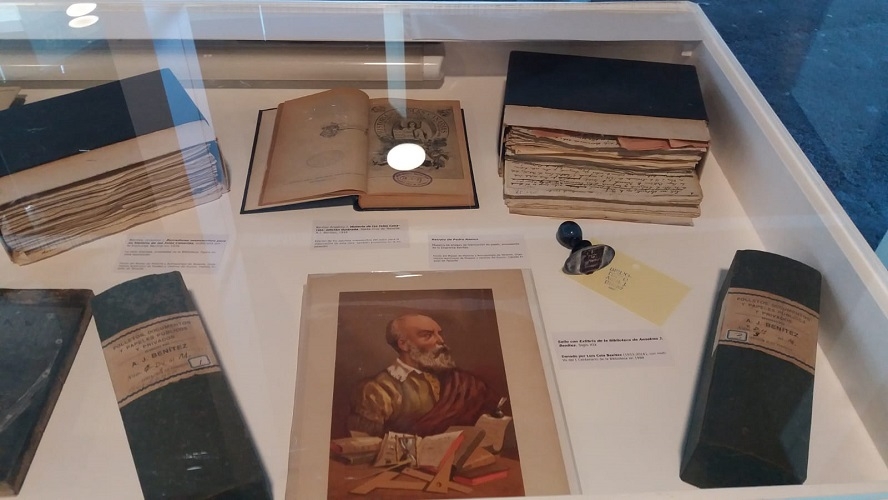 Con motivo de la exposición temporal “La imprenta en Tenerife: siglos XVIII al XX”, la cual puede contemplarse en la Biblioteca Municipal Central de Santa Cruz de Tenerife”, organizada por el Excelentísimo Ayuntamiento de Santa Cruz de Tenerife, el Museo de Historia y Antropología de Tenerife (MHA) ha cedido en préstamo una serie de objetos y documentos del denominado “fondo Benítez”, procedente de la familia homónima, muy conocida en la sociedad tinerfeña de finales del siglo XIX y primer tercio del siglo XX, debido a la popular imprenta que gestionaban y, sobre todo, por el Museo Villa Benítez, una suerte de gabinete de curiosidades cuyas colecciones albergaban elementos de la cultura material aborigen, ejemplares de mineralogía, botánica, cartografía, etc.