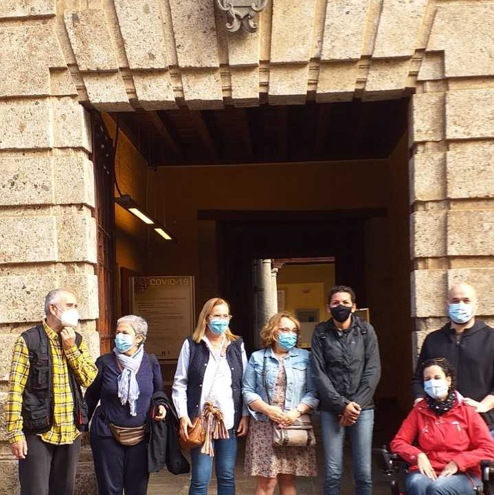 Grupo de visitantes en la puerta principal de Casa Lercaro