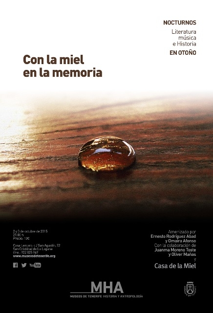Dicen que son capaces de hacer que la luna tenga un sabor dulce y delicioso; que pueden iluminar los caminos más oscuros con su luz y que la primavera solo se viste su traje multicolor de flores si son ellas las costureras que le hilvanan los pétalos y pistilos. Un zumbido acompaña su afanoso quehacer y no hay árbol frutal en flor, jardín florecido o pequeño estanque donde no se las escuche zumbar. Libar el néctar de las flores, transportar el polen, producir la miel, la jalea real, la cera… son solo algunas de las importantes labores que desempeñan las abejas, comunidad perfectamente organizada que compone una colmena. La apicultura en Canarias es una actividad que cuenta con una larga y rica tradición y el Museo de Historia y Antropología de Tenerife, en colaboración con la Casa de la Miel, ha querido aprovechar este nocturno que precede al letargo invernal para hablar de apicultura e historia, para degustar dulces “recuerdos de miel” y para conocer un poco más a las abejas, polinizadoras que esperan pacientes en el interior de sus colmenas el momento de volver a desplegar el manto de flores con el que visten a las Islas cada primavera. Con la llamada de las abejas del apicultor arrancará esta velada llena de sabrosos momentos; unas veces en forma de cuentos e historia y otras en forma de delicadas pero intensas degustaciones. Todo para que al final nos quedemos con la miel en la memoria…y en los labios.