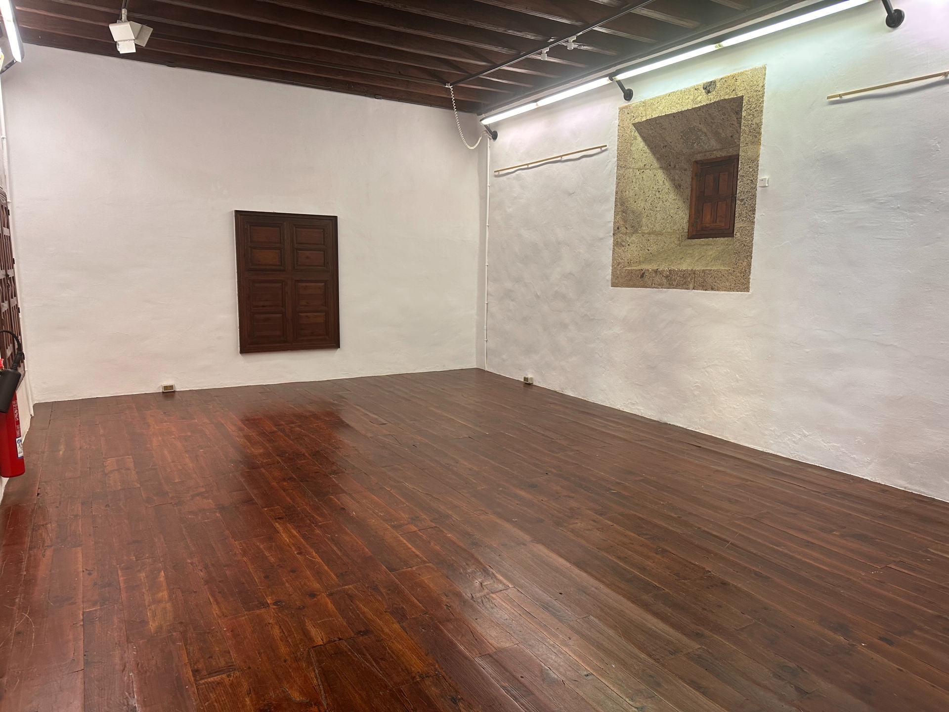 Espacio localizado en la planta baja, adecuado para exposiciones temporales externas o propias del museo, equipada con lo necesario para la exposición de obras.