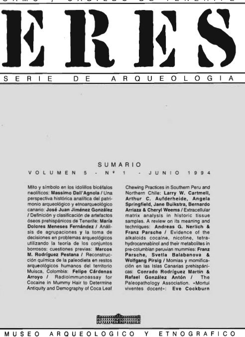 Mito y símbolo en los idolillos bicéfalos neolíticos: M. Dall’Agnola/ Una perspectiva histórica analítica del Patrimonio Arqueológico y Etnoarqueológico canario: J.J. Jiménez González/ Definición y clasificación de artefactos óseos prehispánicos de Tenerife: M.D.  Meneses Fernández/ Análisis de agrupaciones y la toma de decisiones en problemas arqueológicos utilizando la teoría de los conjuntos borrosos: cuestiones previas: M.M. Rodríguez Pestana/ Reconstrucción química de la paleodieta en restos arqueológicos humanos del territorio Muisca, Colombia: F. Cárdenas Arroyo / Radioimmunoessay for cocaine in mummy hair to determine the antiquity and demography coca leaf chewing practice in Southern Peru and Northern Chile: L. Cartmell et al. / Extracellular matrix analysis in historic tissue samples. A review on its meaning and technique: A. Nerlich y F. Parsche / Evidence of the alcaloids cocaine, nicotine, tetrahydrocannabinol and their metabolites in Pre-Columbian Peruvian mummies: F. Parsche et al. / Momias y momificación en las Islas Canarias prehispánicas: C. Rodríguez Martín y R. González Antón / The Paleopathology Association. «Mortui Viventes Docent»: E. Cockburn