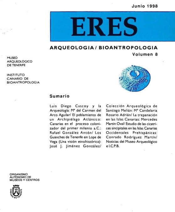 Luis Diego Cuscoy y la Arqueología: M.C. del Arco Aguilar / El poblamiento de una archipiélago atlántico: Canarias en el poblamiento colonizador del primer milenio a.C.: R. González Antón / Los guanches de Tenerife en Lope de Vega (una visión etnohistórica): J.J. Jiménez González / Colección arqueológica de Santiago Melián: M. C. Rosario Adrián / La trepanación en las Islas canarias: M. Martín Oval. / Estudio de las cicatrices sincipitales en las Islas Canarias occidentales prehispánicas: C. Rodríguez Martín.