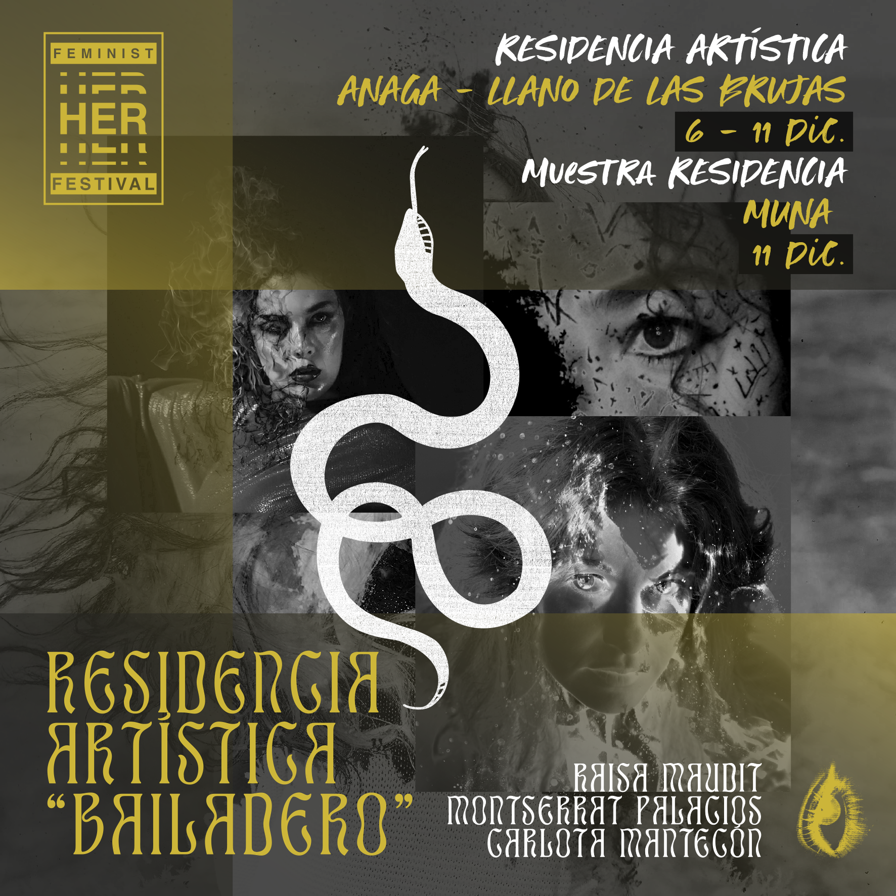 Tres artistas vinculadas a lo oculto y lo mágico desde sus respectivas prácticas artísticas, Raisa Maudit (desde la performance, video y texto), Montserrat Palacios (música y voz) y Carlota Mantecón (danza) se reúnen como si de un aquelarre se tratara en los montes de Anaga, para desde ahí incursionar en los misterios de Anaga y del Llano de las brujas en La Laguna. Una exploración colectiva sobre la brujería y lo invisible, un proceso creativo que desembocará en una acción-ritual en la jornada de conciertos HER2021 del sábado 11 de diciembre del MUNA. Una hoguera que queda prendida.